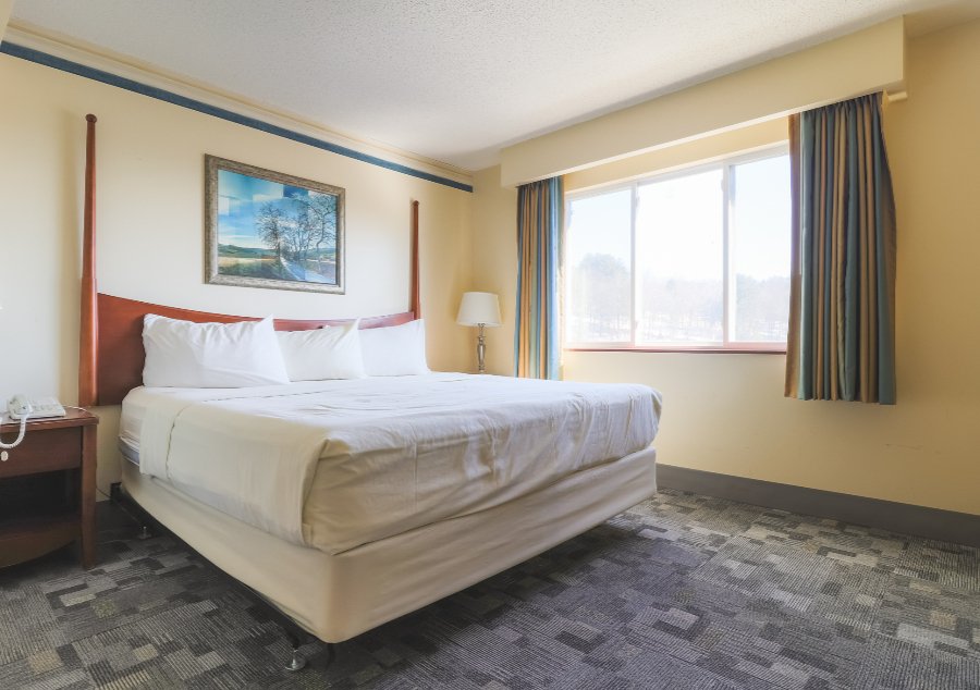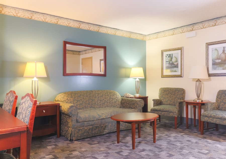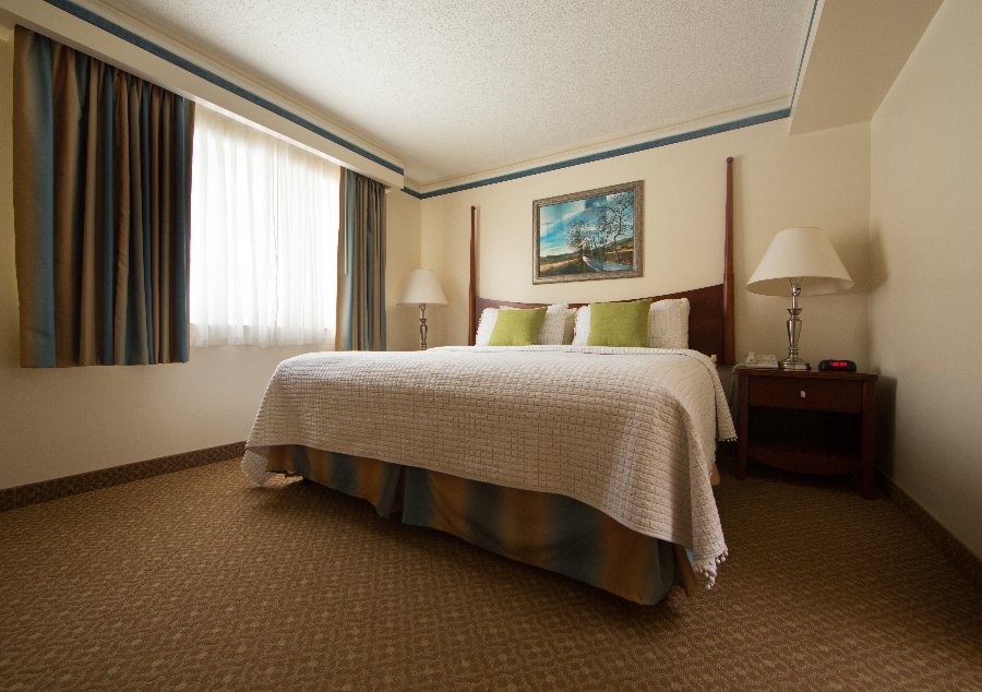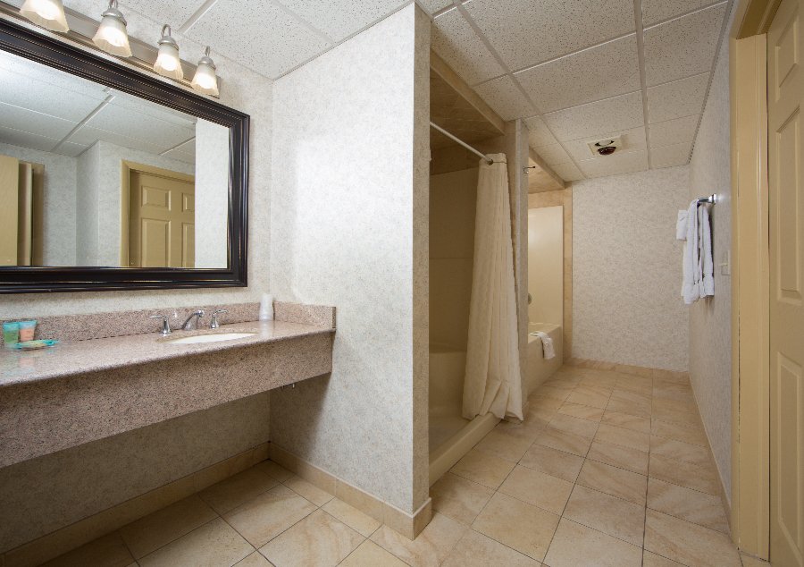 Large suite with separate living room with sofa bed fridge and bedroom with two pillowtop double or queen beds Jacuzzi tub and walk in shower.…